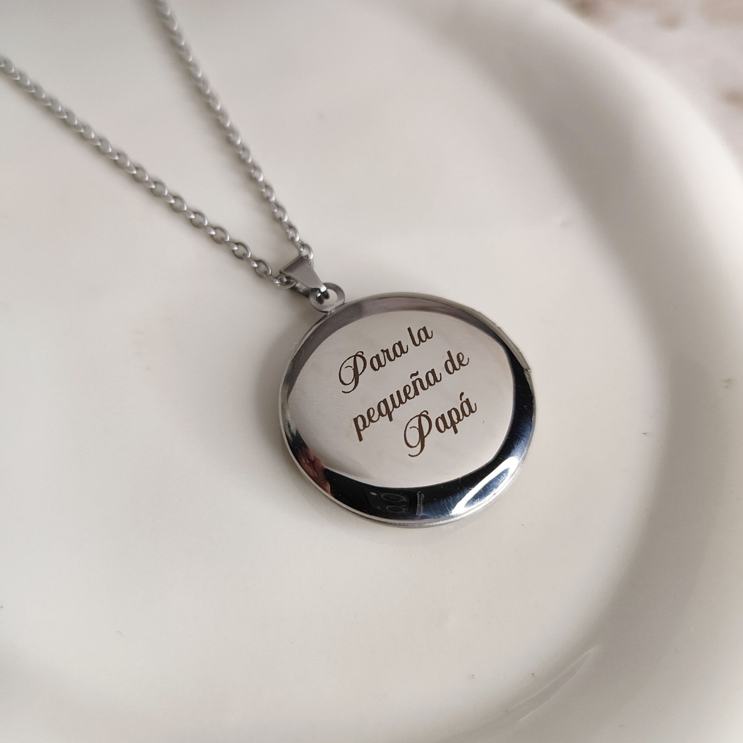 Disponible para personalizar con 2 Fotografías por dentro y opcional una frase corta grabada a laser al frente con un costo extra de $50