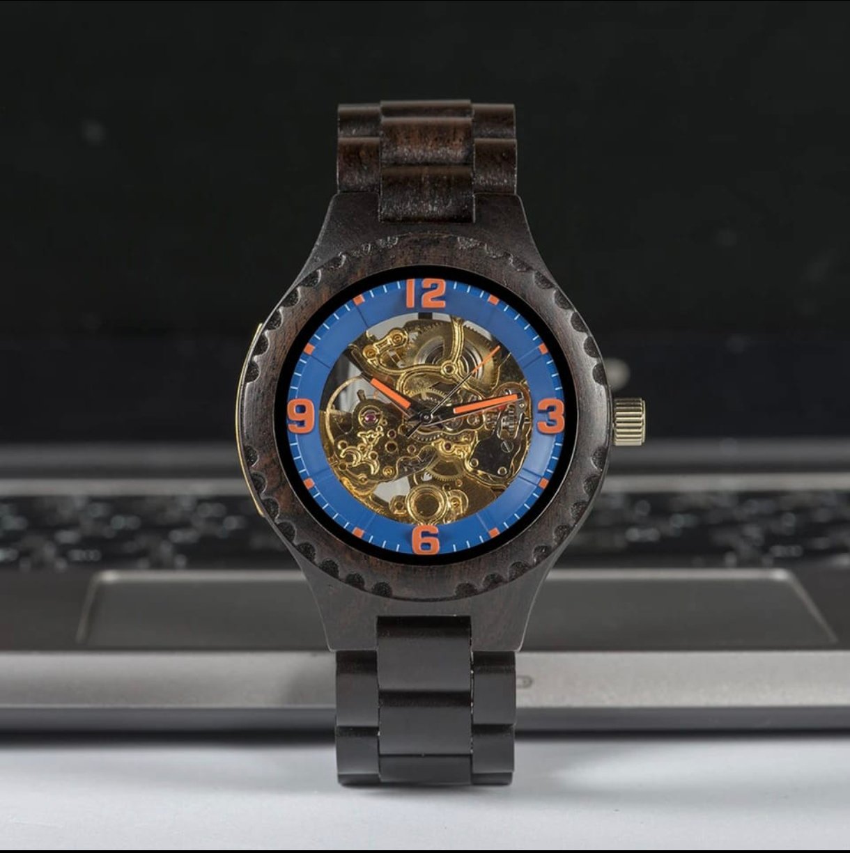 Este elegante Reloj de Madera ha sido manufacturado artesanalmente con madera de ébano : un recurso natural 100% sostenible y respetuoso con el medio ambiente, junto con acero que incrementa su durabilidad y resistencia.