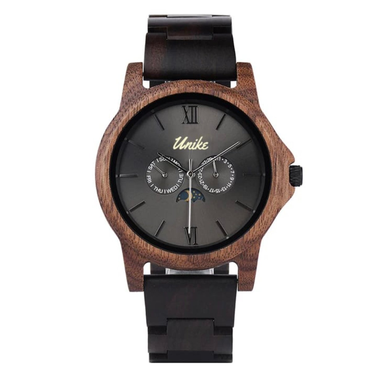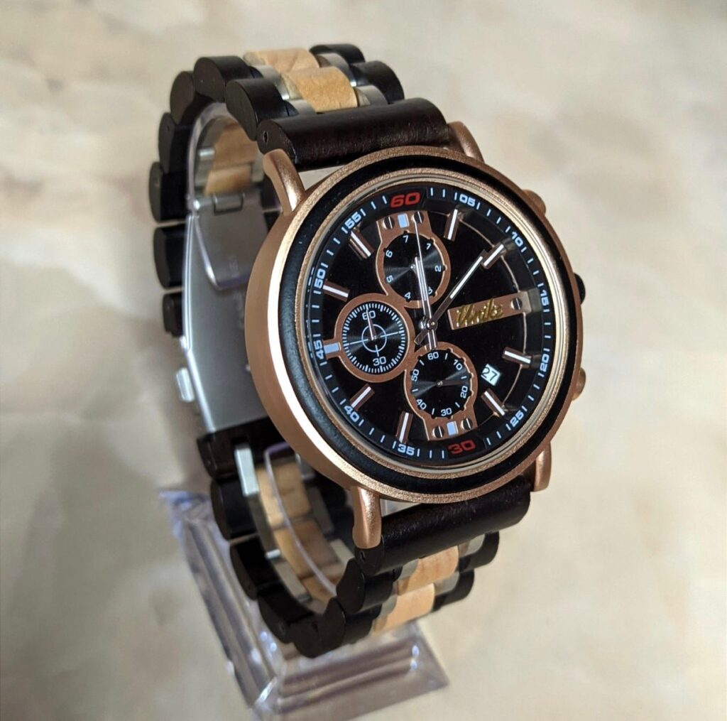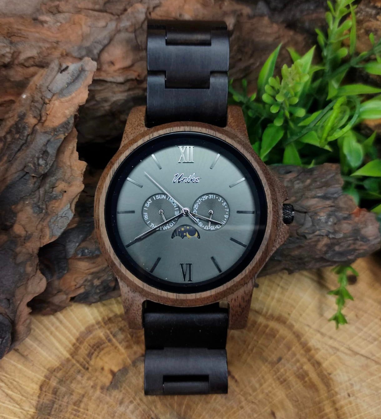 Este elegante Reloj de Madera ha sido manufacturado artesanalmente con madera de ébano : un recurso natural 100% sostenible y respetuoso con el medio ambiente, junto con acero que incrementa su durabilidad y resistencia.