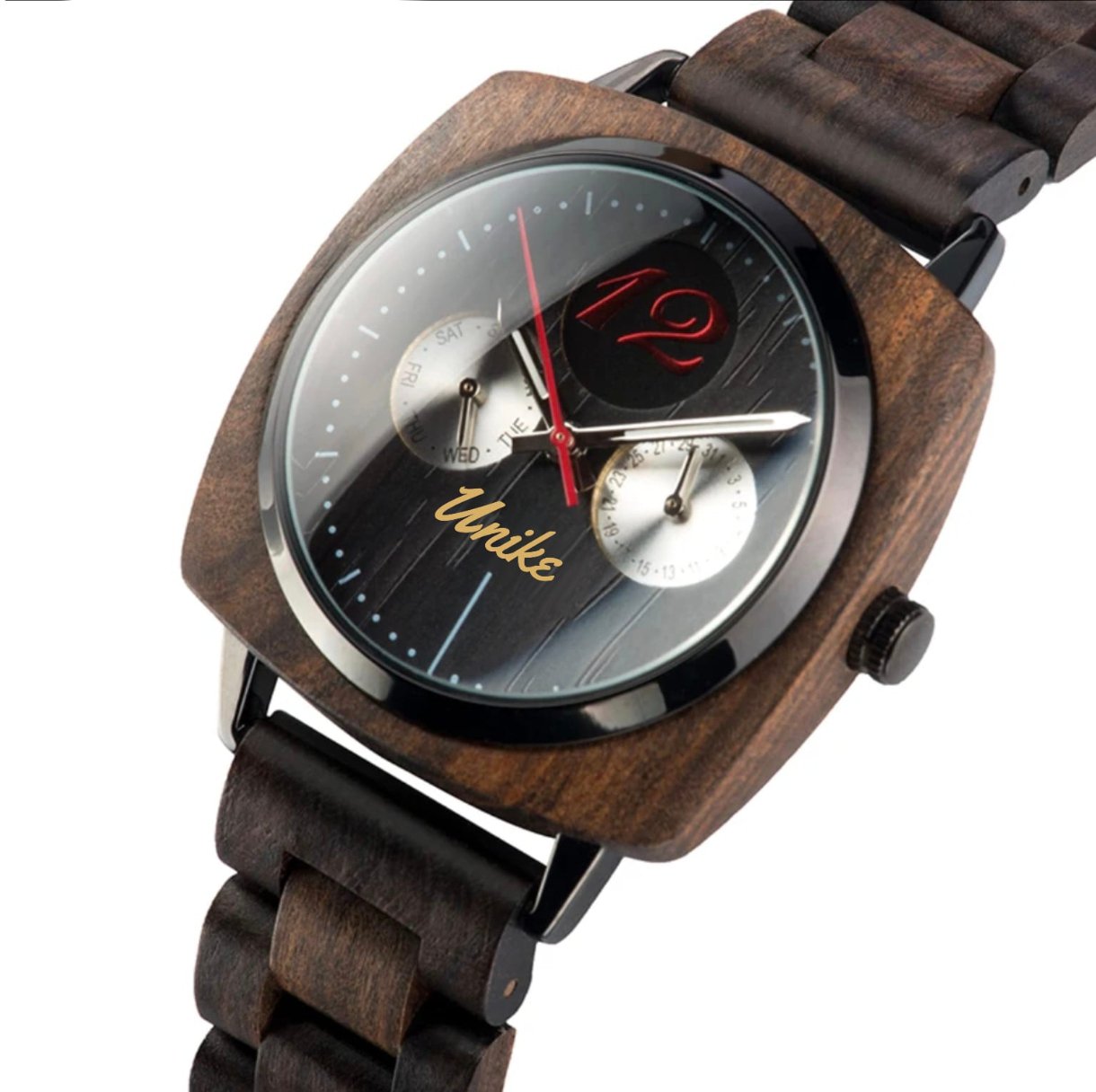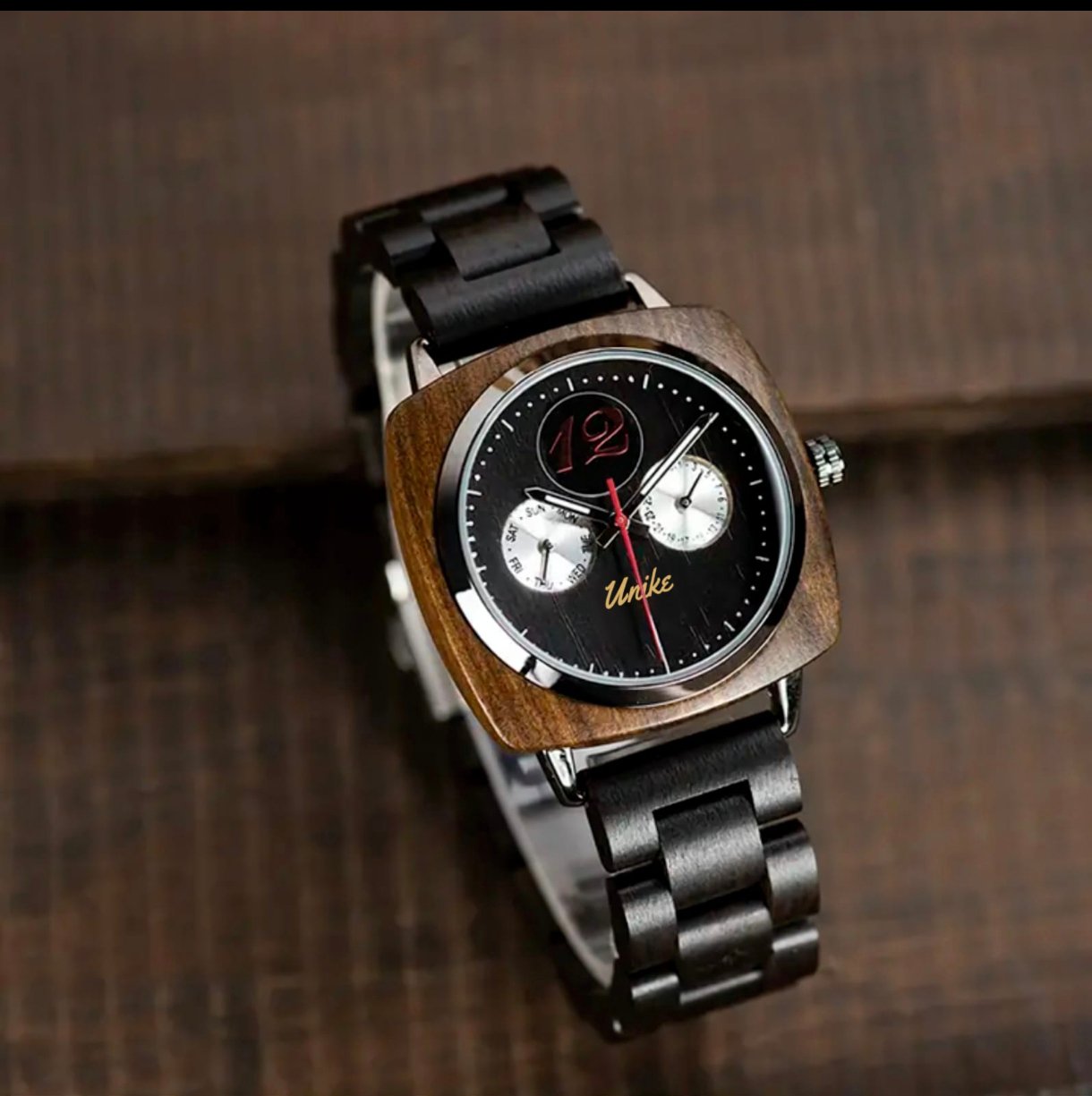 Este elegante Reloj de Madera ha sido manufacturado artesanalmente con madera de ébano : un recurso natural 100% sostenible y respetuoso con el medio ambiente, junto con acero que incrementa su durabilidad y resistencia.